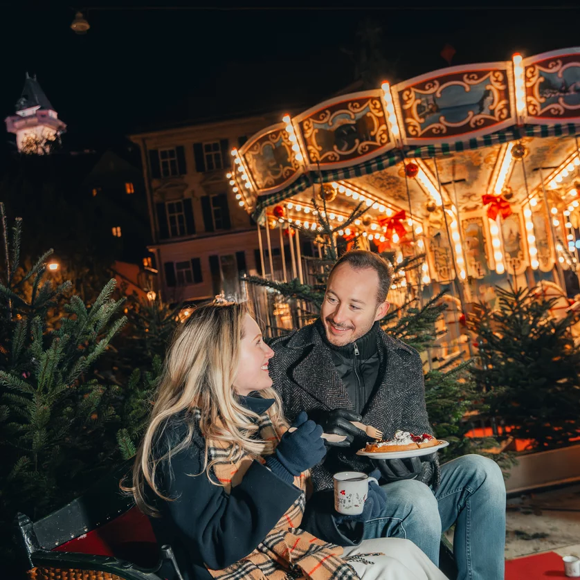 At the urban Christmas market with a view of the clock tower, impressive light projections, high-quality culinary products and live music ensure a pre-Christmas atmosphere.