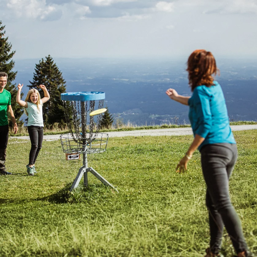 Der Disc Golf-Parcours am Schöckl-Plateau ist eine sportliche Attraktion für die ganze Familie!