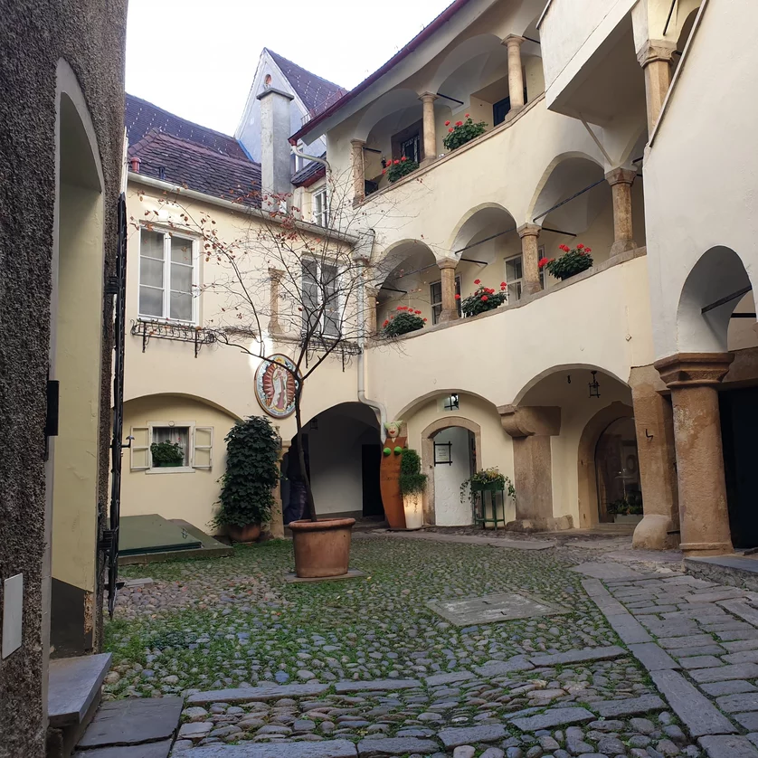 Die Grazer Innenhöfe sind stille, oft versteckte Orte voller Geschichte, Architektur und Atmosphäre. Hinter vielen historischen Fassaden verbergen sich kunstvolle Arkaden, begrünte Rückzugsorte und Zeugnisse vergangener Jahrhunderte.