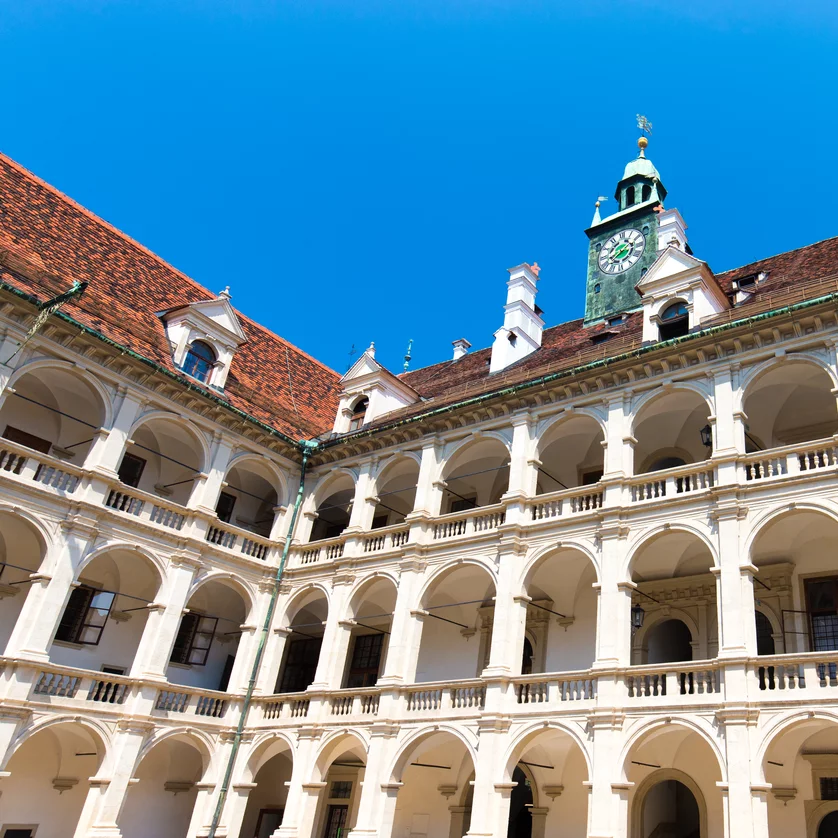 Ein Stück Norditalien mitten in der Grazer Herrengasse? Fast wie ein venezianischer Palazzo mutet das Landhaus an. Ab 1557 errichtete der italienische Baumeister Domenico dell' Allio einen repräsentativen Bau für die Landstände der Steiermark. Noch heute tagen hier die Abgeordneten des Steiermärkischen Landesparlaments.