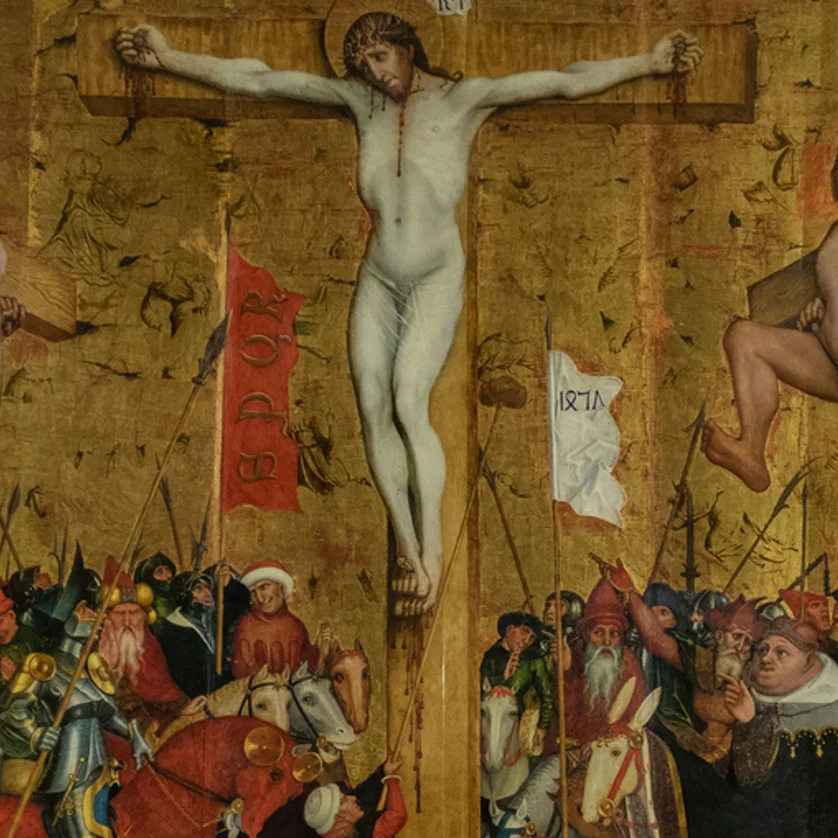 Die "Kreuzigung im Gedräng" ist das größte gotische Tafelbild im Alpenraum. Gemalt von Conrad Laib 1457 ist es das wertvollste Tafelbild dieser Zeit in Österreich. Kaiser Friedrich III. ließ es als Ausstattung für seine Hofkirche anfertigen. Als "Wimmelbild" zeigt das Bild die Kreuzigung Jesu und lädt zum Entdecken spannender Details ein. Das wohl bedeutendste Tafelbild im Alpenraum, genau im Übergang von der Spätgotik in die Renaissance, ist in der Friedrichskapelle des Grazer Doms zu sehen. Diese mit Fresken ausgestattete Kapelle im 1. Obergeschoß ist nur über Treppen zu erreichen (nicht barrierefrei).
