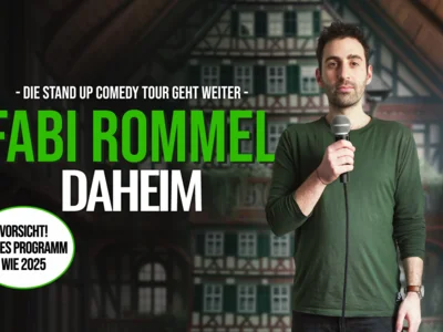 n “Daheim” spricht der Stand Up Comedian über den geplanten Wegzug aus Berlin, Heimweh, Freunde, Familie, das Leben in der Großstadt und den Wunsch nach Natur. Er erzählt Geschichten von Verfehlungen seines Umfelds und vor allem von sich selbst. Mit seiner gewohnt ruhigen Art, dem humorvollen Storytelling und ausschließlich wahren Geschichten aus seinem Leben möchte Fabi das Publikum auch in 2025/26 wieder für einen Abend zum Lachen zusammenbringen.