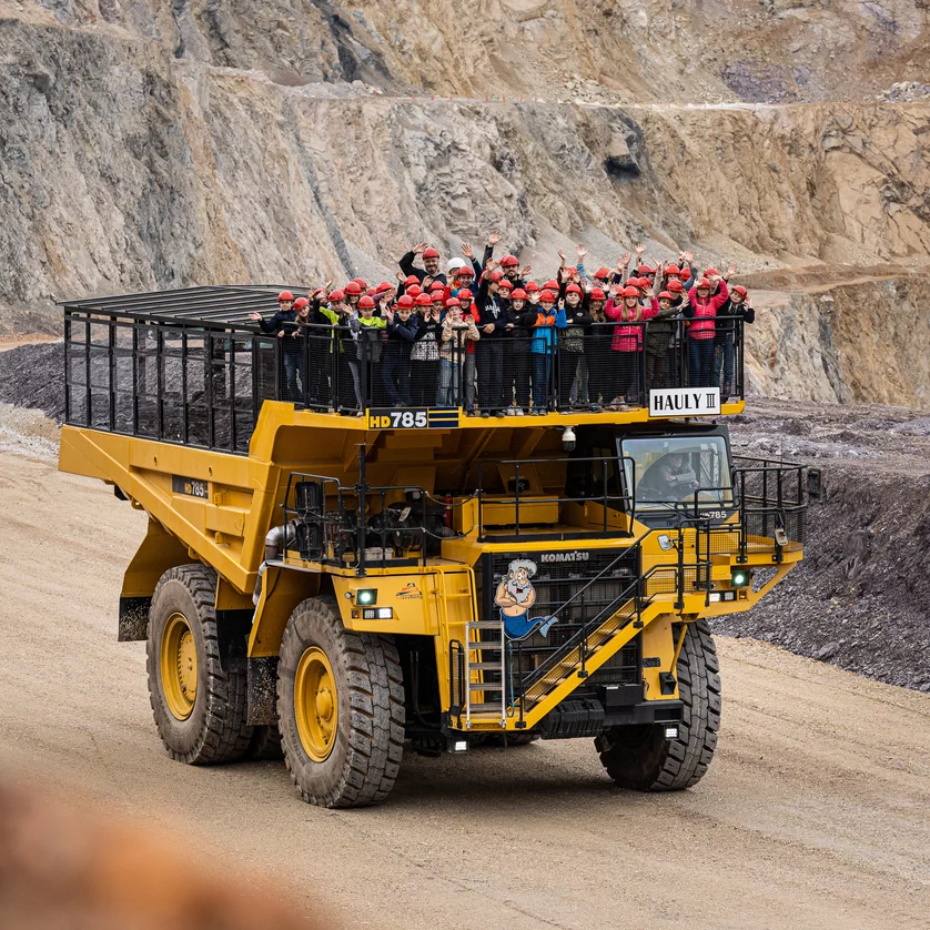 - On Thursdays from May to October, guests can experience ore mining up close - because it gets loud. They are taken directly to the blasting site by Hauly and experience how up to 80,000 tons of ore and rock are blasted out of the mountain.