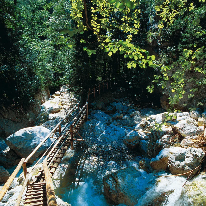 The Bärenschützklamm, one of the most beautiful water-bearing rock gorges in Austria, can be reached in about 40 minutes from Graz. Through the Bärenschützklamm, 164 bridges and wooden ladders take you up to the “Zum Guten Hirten” rest stop.