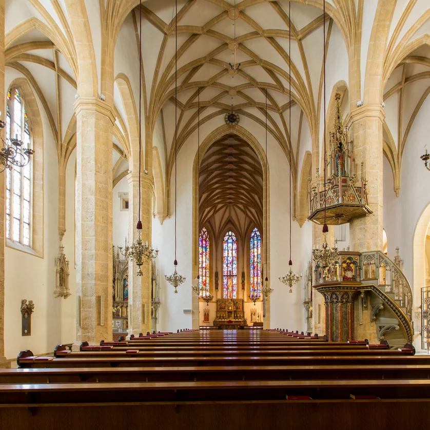 The organ of Stadtpfarrkirche is among the best in Styria. It was built in 1970 by the company Rieger from Vorarlberg. You can hear the organ play at services, at organ concerts and in summer as "Mittagsklänge" (sounds at noon) inviting to a pause in the rush of the city.