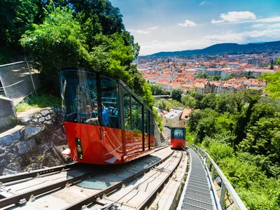 The Schlossberg funicular carries visitors comfortably up and down Schlossberg hill - wonderful views of Graz guaranteed.