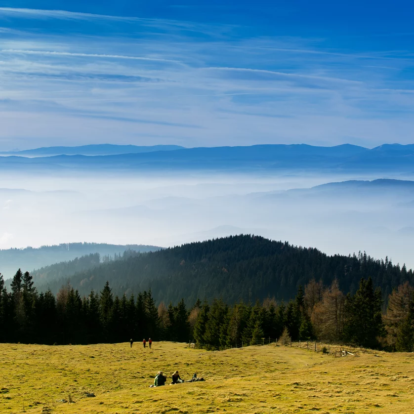In terms of its geology, the Schöckl is a limestone mountain with a core of crystalline rock. At the interface of permeable and impermeable rock, springs come to the surface. Thanks to radioactive springs and healthy air, the village of St. Radegund on the southern foot of Schöckl became an internationally renowned spa in the 19th century. If you don't want to walk all the way up the mountain, you can take the modern six-passenger cablecar and "fly" up to the plateau within seven minutes. From the top of Schöckl, you can enjoy a panoramic view: let your gaze wander from the Triglav mountain at the border between Slovenia and Italy and Slemen near Zagreb, over the plains of Pannonia to the mountain tops of Wechsel, Rax and Hochschwab in the north and Stubalpe, Gleinalpe and Koralpe in the west.