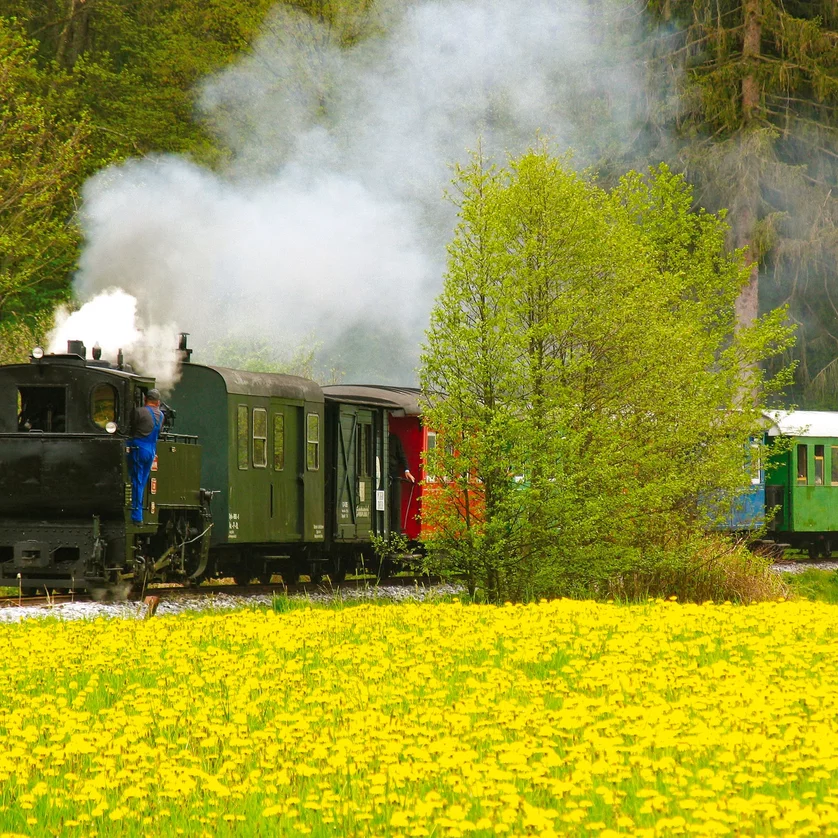 Enjoy a nostalgic train ride through the Schilcher-Kernöl-Land with the legendary Stainzer Flascherlzug from Stainz to Preding & back.