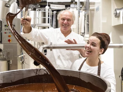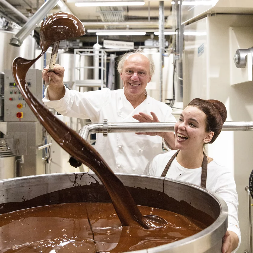 During the exciting tasting tour through the Chocolate Theatre you will witness live how chocolate is created. You can look inside our production through the glass architecture and at the same time check out at the tasting stations how the cocoa bean is transformed into chocolate. From the bean to the bar. Chocolate is an experience! Reservation strongly recommended: Book your choco tour, experience first-hand how chocolate is made and snack to your heart's content.