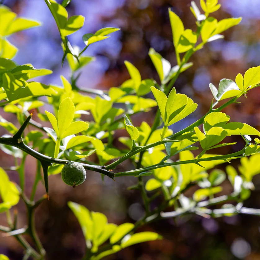 The original habitat of the bitter orange (Poncirus trifoliata) is in the Himalayas, China and Japan. The shrub has striking, thorny shoots and fragrant white flowers in May. The fruits are lemon-like berries with a diameter of around 3 to 5 centimetres, which also have an aromatic scent but are inedible when raw. In many parts of the world, the bitter orange is a sought-after grafting base for lemon and orange trees. In the Mediterranean region, the fruits are often made into jam, but are also used as a kitchen spice.