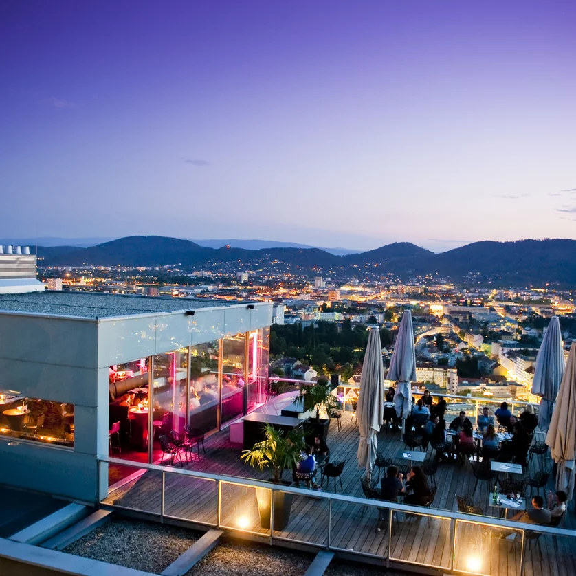 It is the local mountain of the people of Graz, home to gastronomic diversity. Located at an altitude of 464 meters, the restaurant invites you to eat, drink and celebrate. The gourmet restaurant pampers gourmets with its awardwinning creative cuisine and exquisite traditional Graz dishes. At SkyBar Graz, you can enjoy not only cool drinks, but also what is probably the best view in the city. The Gösser adventure beer garden is also full of charm. Conclusion: a multifaceted setting for everything from candlelight dinners to events for up to 500 people.