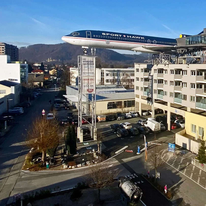 Il "NOVAPARK Flugzeughotel" situato alla periferia nord di Graz si presenta con 157 camere e appartamenti e con l'originalissimo Nova-Air, location unica nel suo genere a 22 metri d'altezza ricavata in un veivolo Iljuschin e in un Boeing trasformati rispettivamente in bar e ristorante. Lunga esperienza professionale a capo del servizio banchetti che con 22 sale riunioni (di cui una che può contenere fino a 900 persone) è in grado di offrire il meglio per conferenze, seminari e manifestazioni varie. L'Oasi Wellness Nova-Spa di 3.000 m² con piscina e saune è a vostra disposizione tutti i giorni compresi i festivi.