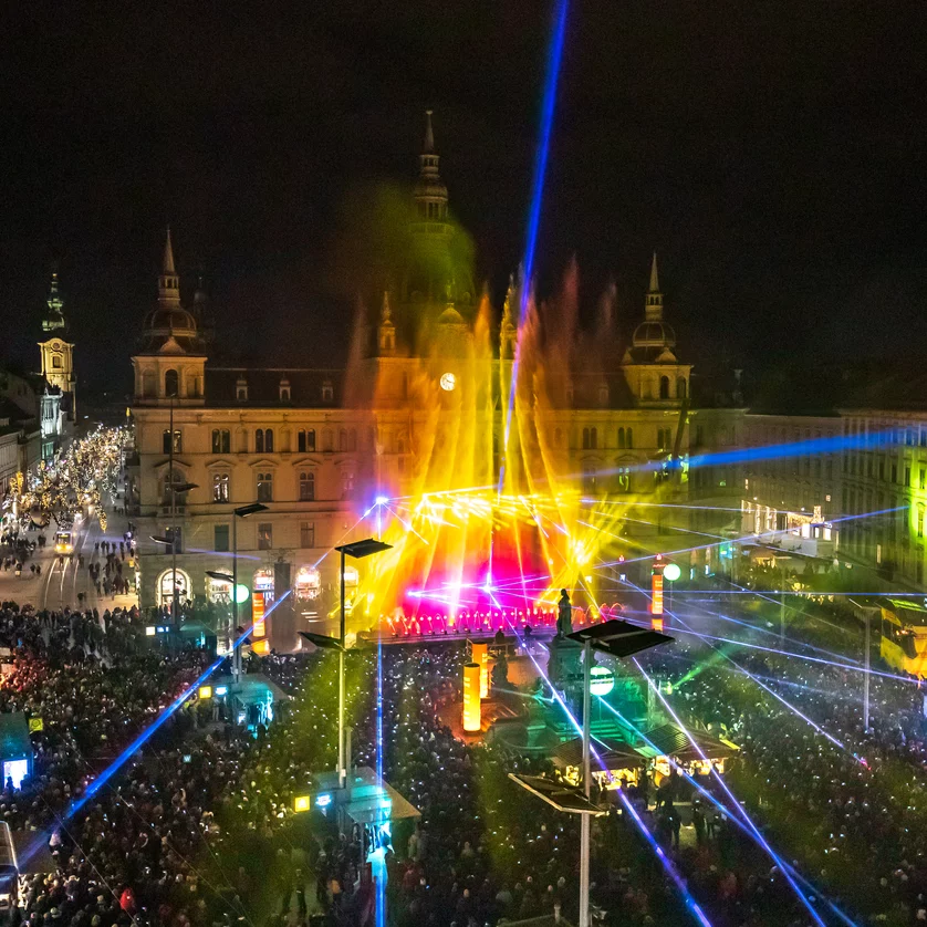 Attendo con ansia uno spettacolo nel mezzo di Graz! Acqua, fuoco, laser e luce si uniscono ancora una volta in uno spettacolo impressionante e stupiscono con uno spettacolo travolgente davanti allo scenario da sogno del municipio di Graz. Affascinanti proiezioni video su uno schermo d'acqua ispirano e rendono il volgere dell'anno un momento clou.