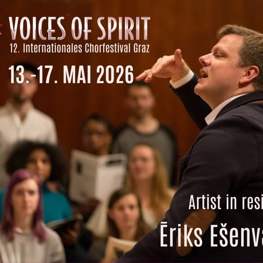Il festival corale internazionale Voices of Spirit trasformerà Graz in una “Città che canta” dal 13 maggio al 17 maggio 2026. Ēriks Ešenvalds sarà l'artista in residenza.