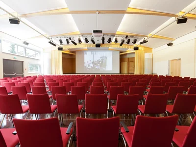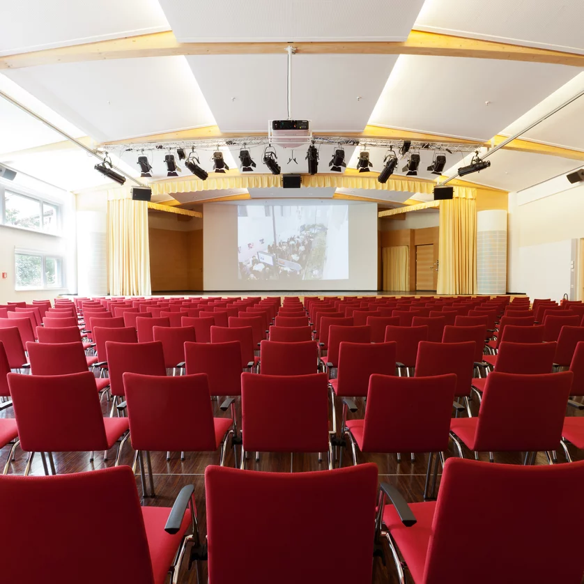 Foyer, cloakroom, restaurant, stadium seating, high-end sound system and stage illumination, full HD large-screen projection, 10 Gbit internet connection, all rooms offer barrier-free access, spacious artists’ dressing room which can be divided, Jupiter hall: 60 m2 stage.