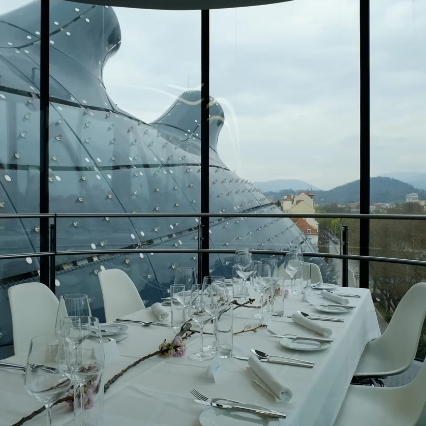 Located on the right bank of the Mur, the Kunsthaus Graz forms a contrast in styles with the historic city centre and has become the architectural emblem of Graz. It also has been carried with the Austrian "Green Location" eco-label since recently. Contemporary art exhibitions and memorable event locations offer the right setting for your events, with the “spacey” architecture and Vitra Design furnishings providing that special touch. Candlelight dinners, presentations or panel discussions, the remarkable ambience of Space04 and Needle in Kunsthaus Graz makes your impressive event unforgettable.”
